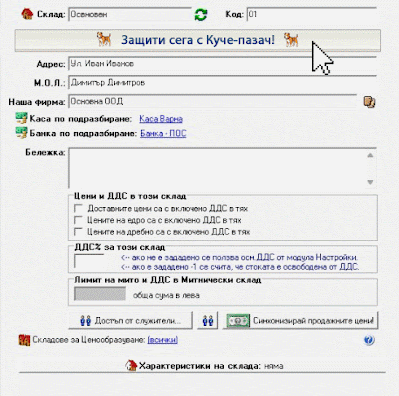 Затова в новата актуализация на софтуера MoneyWorks сме добавили нов бутон в модула "Складове и стоки", а именно куче-пазач.